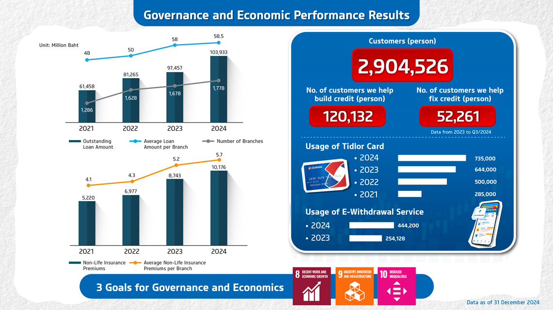 With objectives aimed at achieving sustainable growth, increase long-term business value with legitimate, transparent and auditable operation. We emphasize integrity, while considering risks, responsibilities and fair treatment to stakeholders and all relevant parties together with supporting sustainable economic, social and environmental development. Good Corporate Governance Principles are established in compliance with the good corporate governance criteria stipulated by the Stock Exchange of Thailand (SET), the Securities and Exchange Commission (SEC), and Thai Institute of Directors Association (IOD).