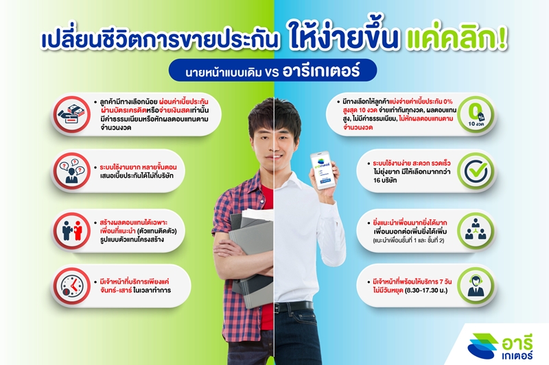 สำหรับนายหน้าประกันภัยหรือนักขายอิสระสามารถเยี่ยมชมข้อมูลอารีเกเตอร์ (Areegator) และสมัครสมาชิกโดยไม่มีค่าใช้จ่ายได้ที่ www.areegator.com และ Facebook อารีเกเตอร์ หรือติดต่อสอบถามรายละเอียดเพิ่มเติมได้ที่ call center หมายเลขโทรศัพท์ 02-792-1320 (จ.-ศ. เวลา 08.30 – 17.30 น.)