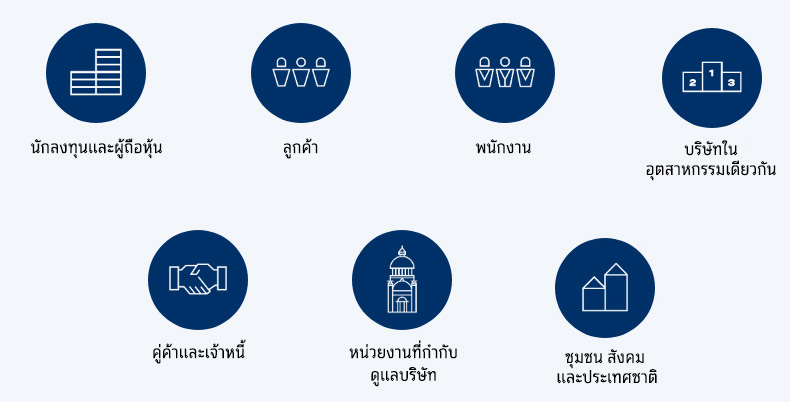 นอกจากนี้ บริษัทได้ยึดแนวคิดเรื่อง “ความยั่งยืน” ที่นำเสนอมุมมองด้านเศรษฐกิจ สิ่งแวดล้อม และสังคม มาเป็นพื้นฐานสำคัญในการการดำเนินงานด้วยความรับผิดชอบของบริษัทต่อผู้มีส่วนได้เสีย (Stakeholders) ในทุกขั้นตอนของบริษัท และสอดคล้องกับหลักธรรมาภิบาลที่มีความโปร่งใส และสามารถตรวจสอบได้