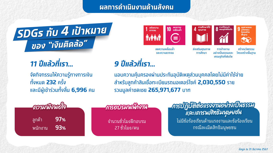 บริษัทมุ่งมั่นให้ความสำคัญกับการสร้างโอกาสทางความรู้ด้านการเงินและการศึกษาอย่างต่อเนื่อง เพื่อช่วยให้ผู้คนมีชีวิตหมุนต่อได้อย่างยั่งยืน